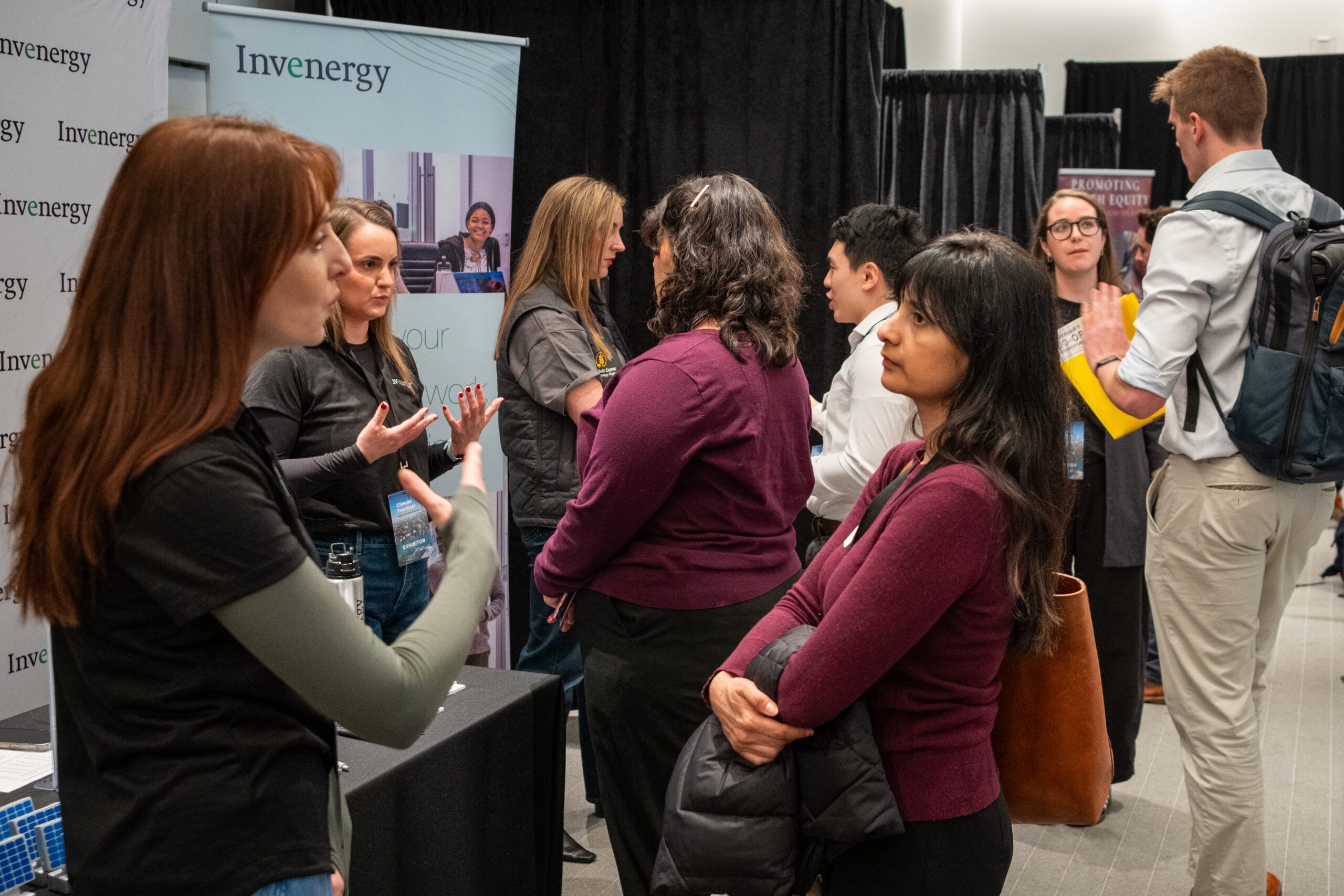 Students could also network with and learn about a broader group of employers at the Career Fair. Nearly 40 leading climate and energy organizations including businesses, non-profits and government agencies were represented including the Chicago Department of Environment, Invenergy, RWE, and Urban Rivers (view the employers).