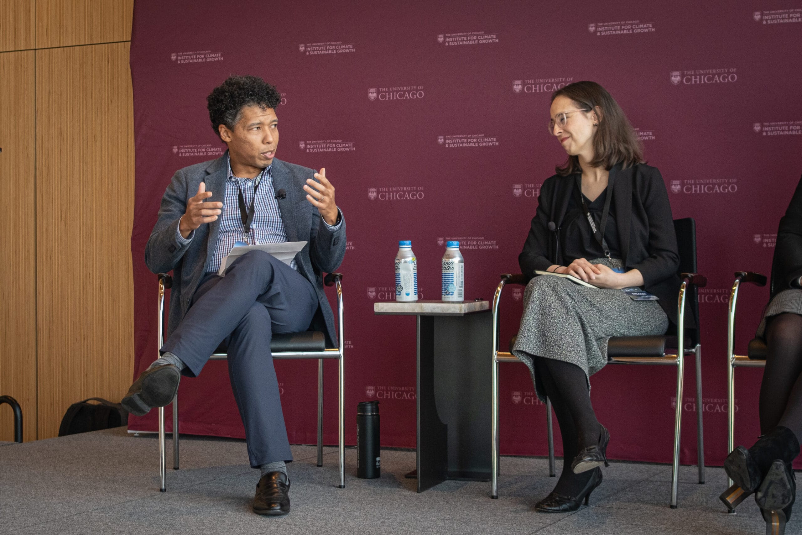 Policy-minded students could tune in to the climate policy career panel to hear from expert practitioners on the pathways, skills, and experience needed to create a meaningful policy career. Carrie Zalewski, Vice President of Transmission and Electricity Markets at the American Clean Power Association; Chris Wheat, Managing Director of Policy & Government Affairs at the Sustainable Cities Fund; and MeLena Hessel, Midwest Deputy Program Director at Vote Solar, shared advice and perspective on how to navigate policy volatility and break into the field. Kaushik Deb, Executive Director of the Energy Policy Institute at the University of Chicago – India, moderated the discussion.