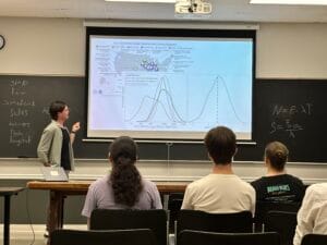 The fellows also had the opportunity to get to know each other and the Institute through a series of lunch events. B.B. Cael, Assistant Professor of Geophysical Sciences, and Chibueze Amanchukwu, Neubauer Family Assistant Professor of Molecular Engineering, each presented on their research and academic journeys. Sophia Wennstedt, Assistant Director of Careers in Climate and Energy at the Office of Career Advancement, shared job hunting tips and career opportunities. Senior Instructional Professor Conor Carney gave information on the Institute’s new educational programs, including the new Climate and Sustainable Growth major.